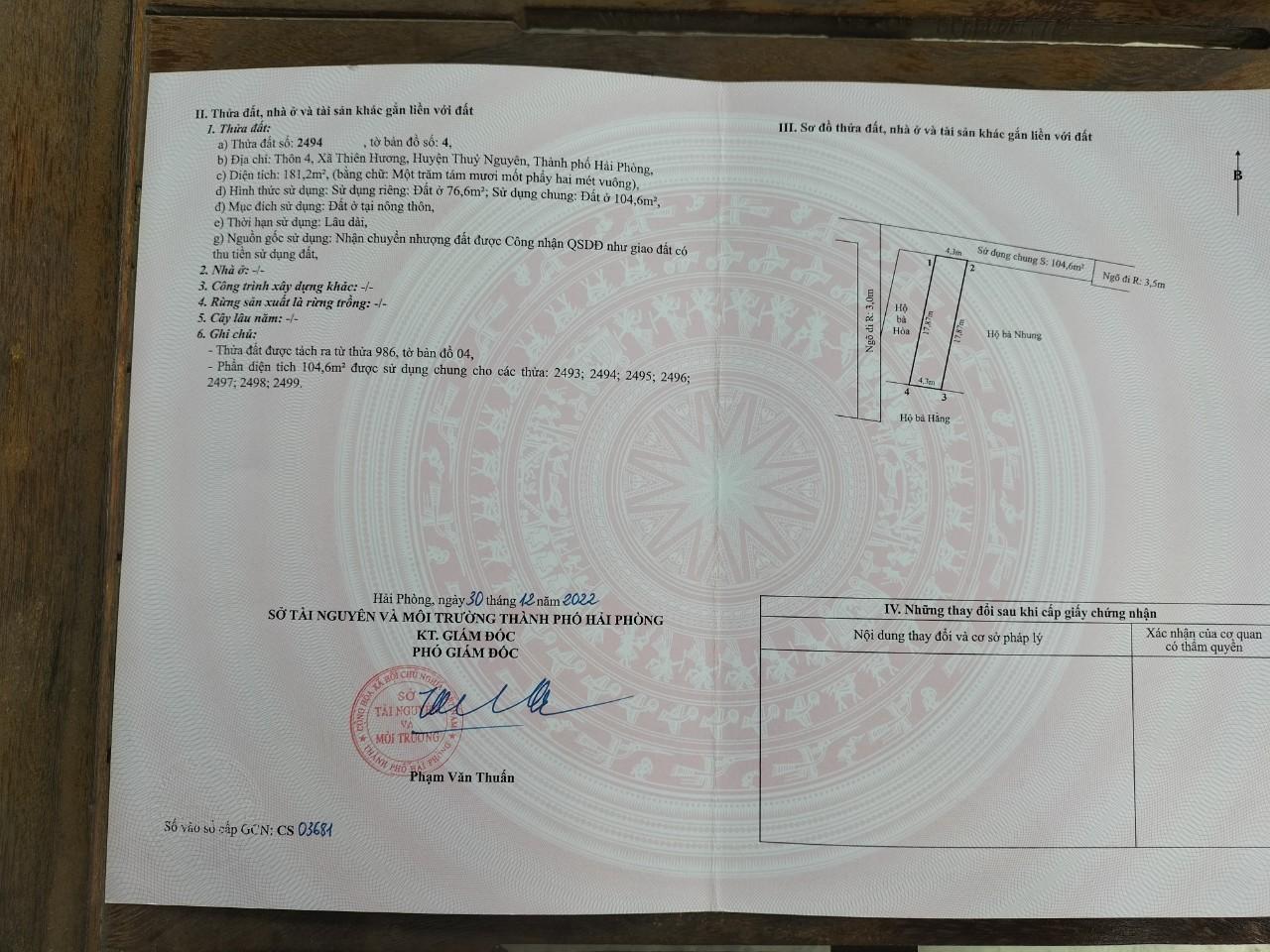 🎀Em có lô đất ở thôn 4, xã Thiên Hương,huyện TN-HP cần bán🎀