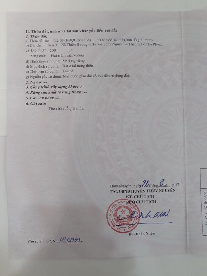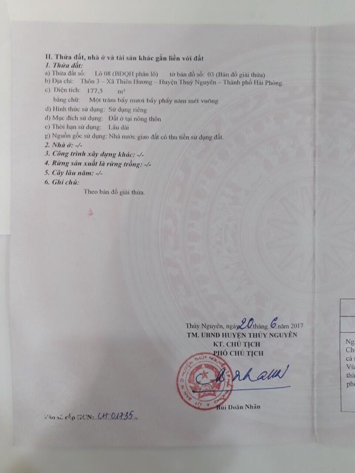 Bán đất phân lô Trịnh Hưởng, thiên hương, thủy nguyên, Hải phòng.