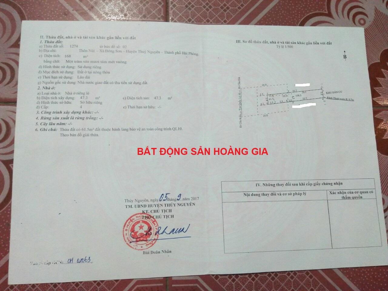BÁN ĐẤT TẠI MẶT ĐƯỜNG QL10 THÔN NÚI – ĐÔNG SƠN – THỦY NGUYÊN
