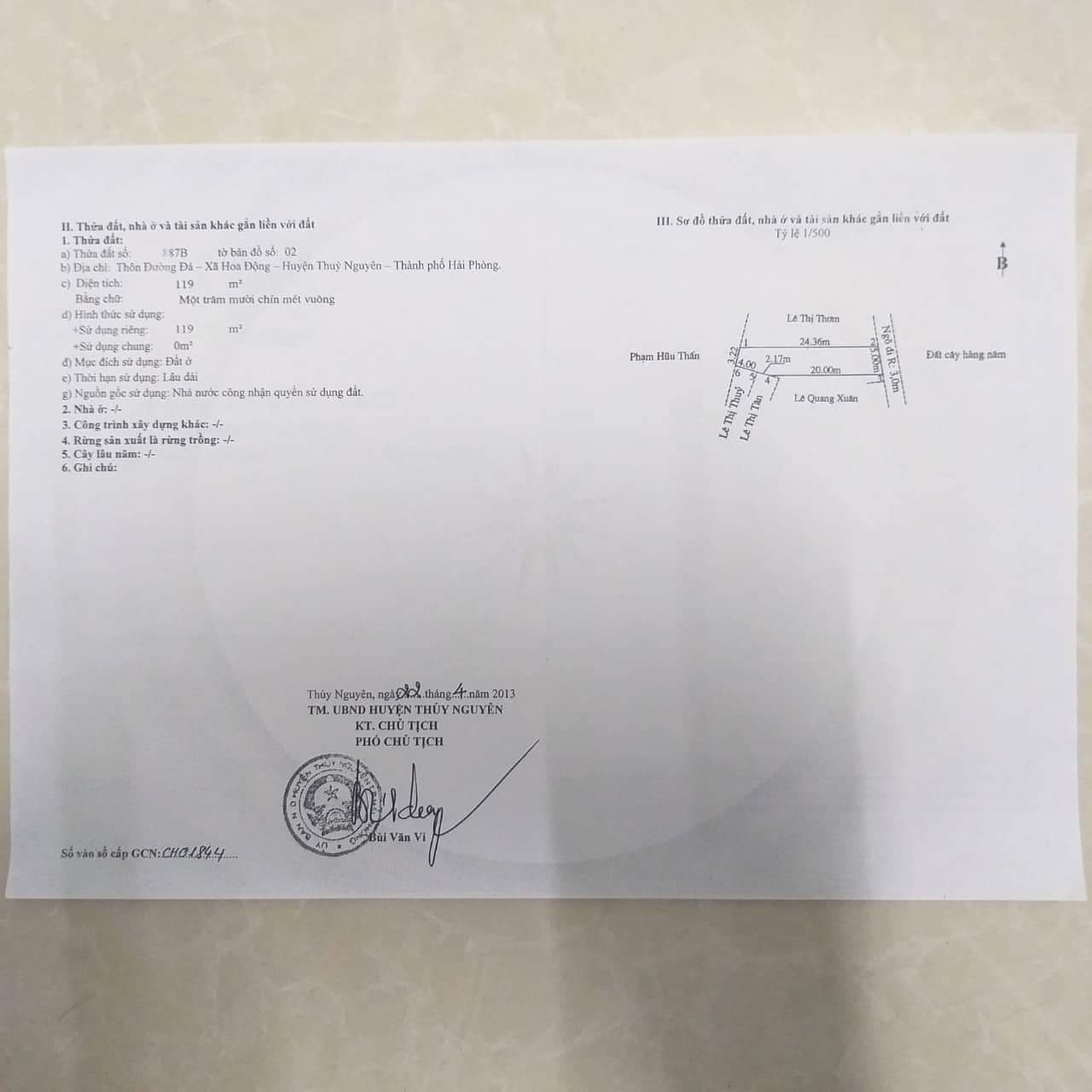 Bán lô đất tại thôn 2 xã Hoa Động TN HP
