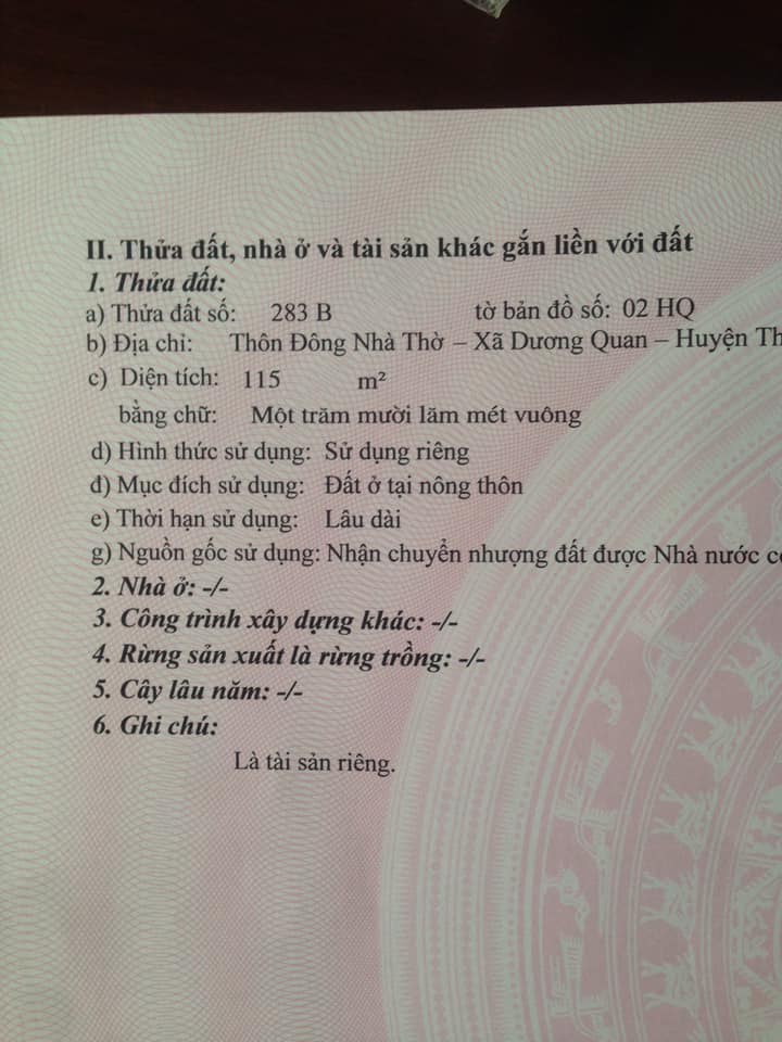 Bán đất xã Dương Quan, Thủy Nguyên, Hải Phòng