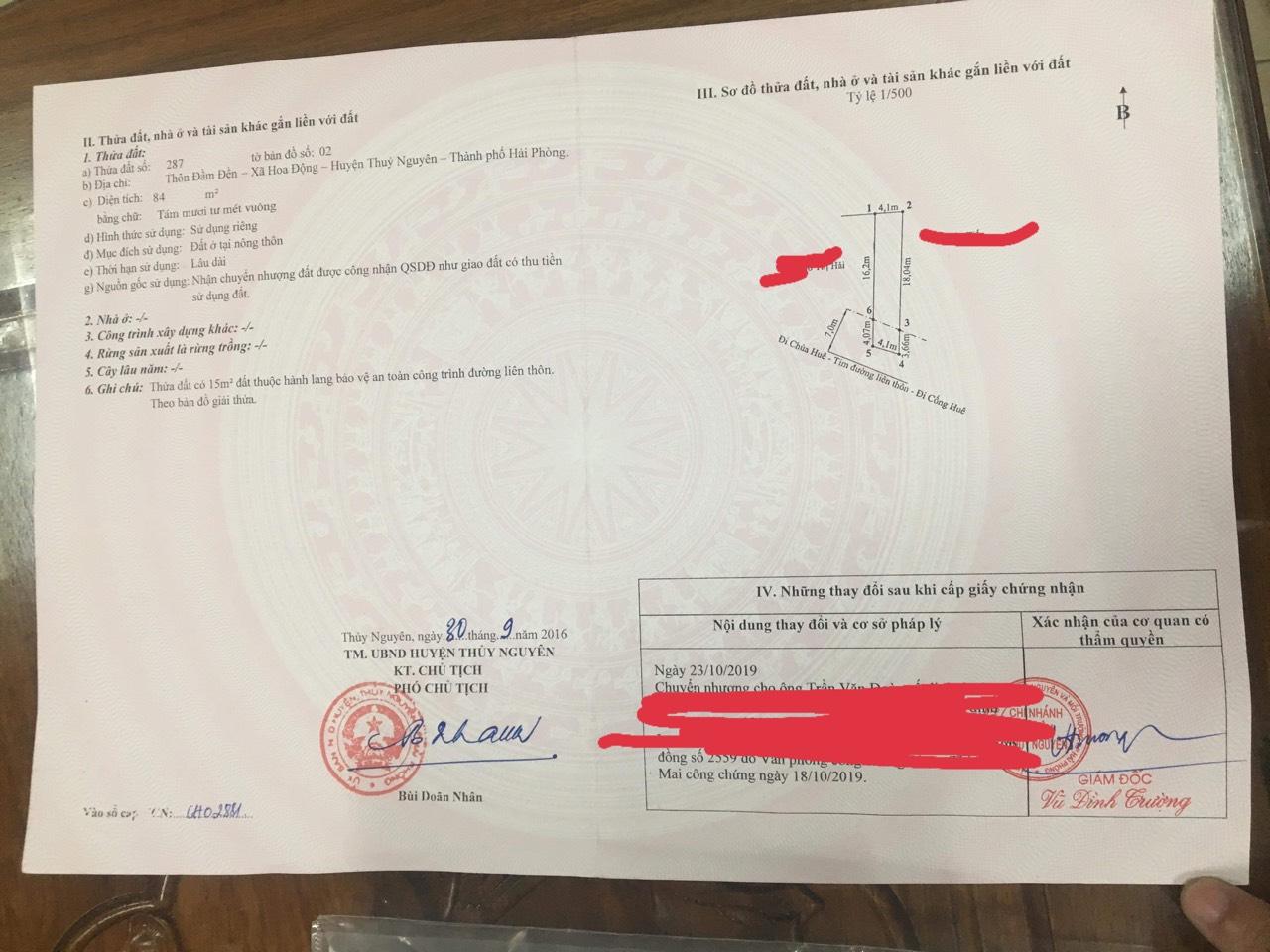 Bán lô đất mặt đường Cống Huê Hoa Động