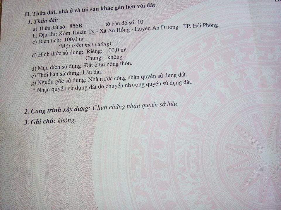 - Bán lô đất thổ cư thuộc thôn Thuần Tỵ, xã An Hồng, huyện An Dương, TP Hải Phòng (Gần cổng sau KCN Nomura).: 320.000.000