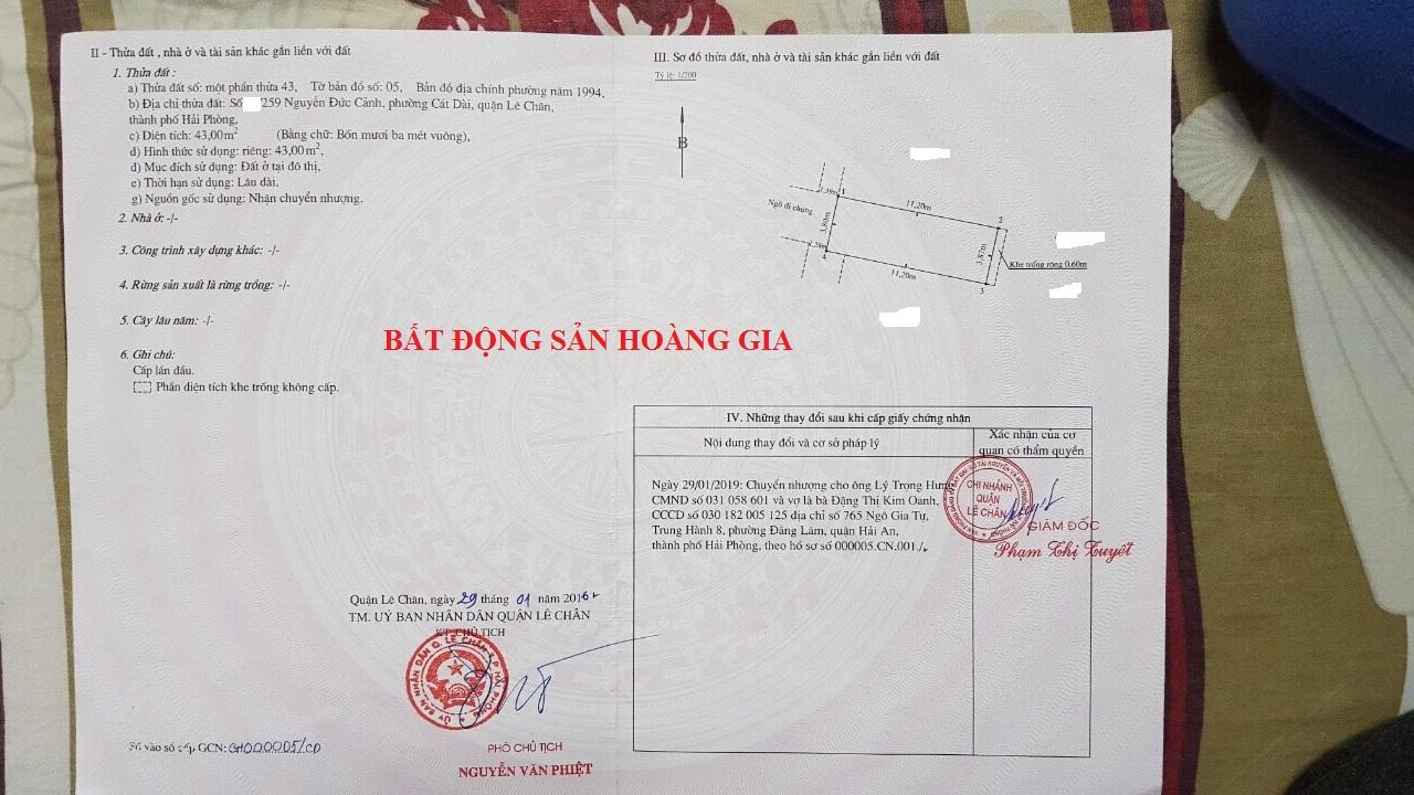 🔻BÁN NHÀ TẠI NGÕ 259 NGUYỄN ĐỨC CẢNH – LÊ CHÂN – HẢI PHÒNG 🔻