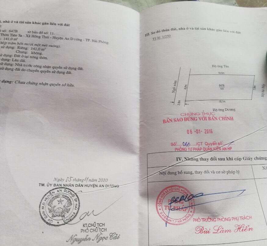 Cần bán nhanh lô đất tại Tiên Sa – Hồng Thái – An Dương