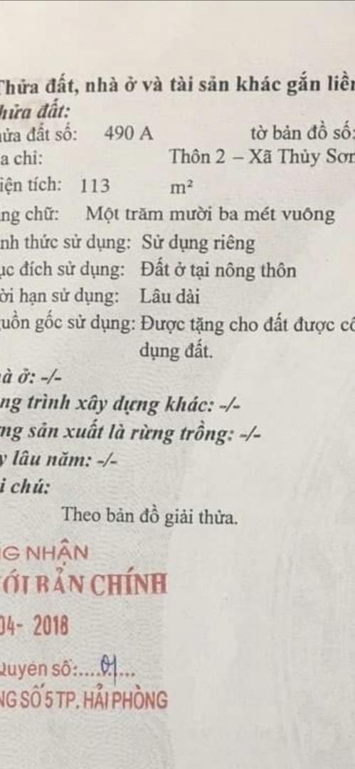 Địa chỉ: 99A, Phố Mới, Thuỷ Sơn, Hải Phòng