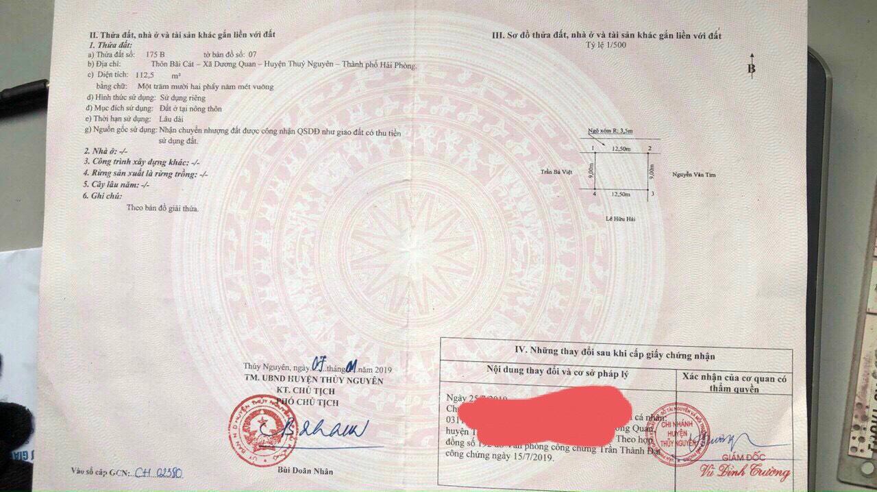 🌺🌺Chào bán 112,5m2 đất tại Bãi Cát – Dương Quan – Thuỷ Nguyên – Hải Phòng