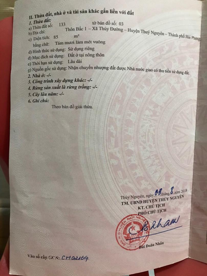 Lô đất tuyệt đẹp tại thôn Bắc 1 – Thuỷ Đường